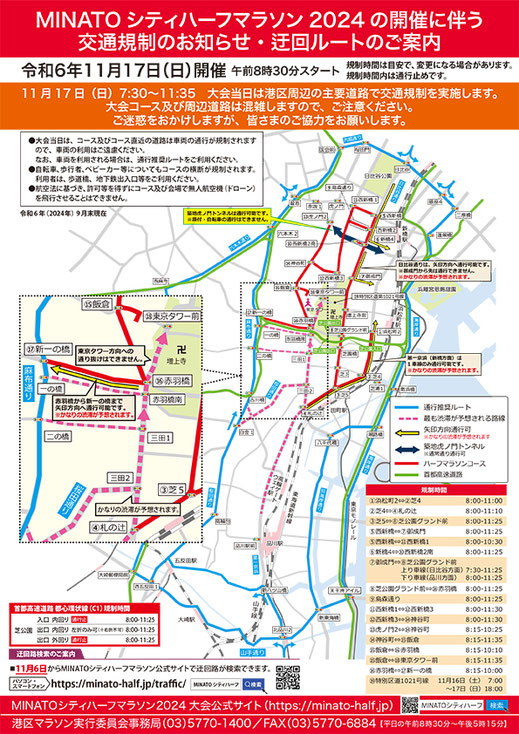 「MINATOシティハーフマラソン2024」開催に伴う交通規制は、下記をご確認ください。